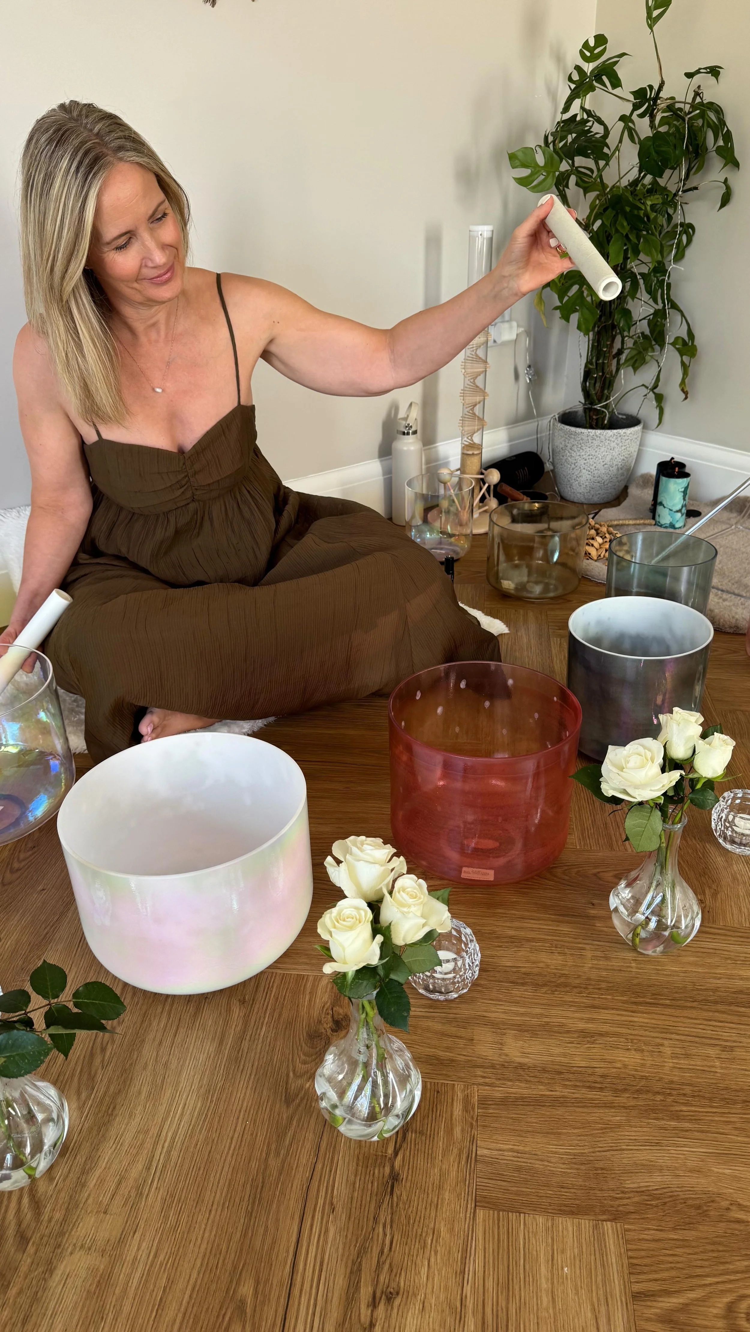 I offer group yoga classes, private 1:1 yoga sessions, and immersive sound healing experiences from my Wellbeing Studio in Lymington, Hampshire.